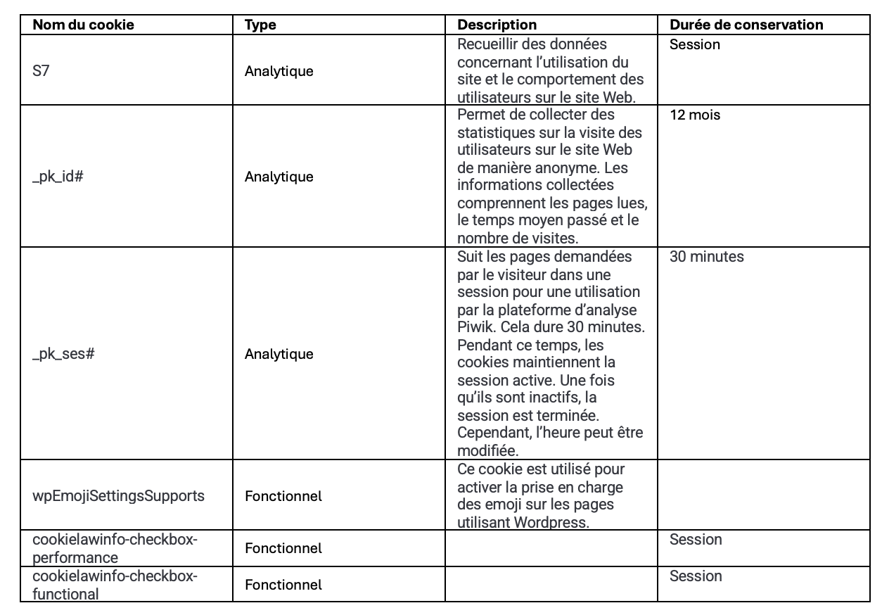 6.3 Liste détaillée des cookies utilisés