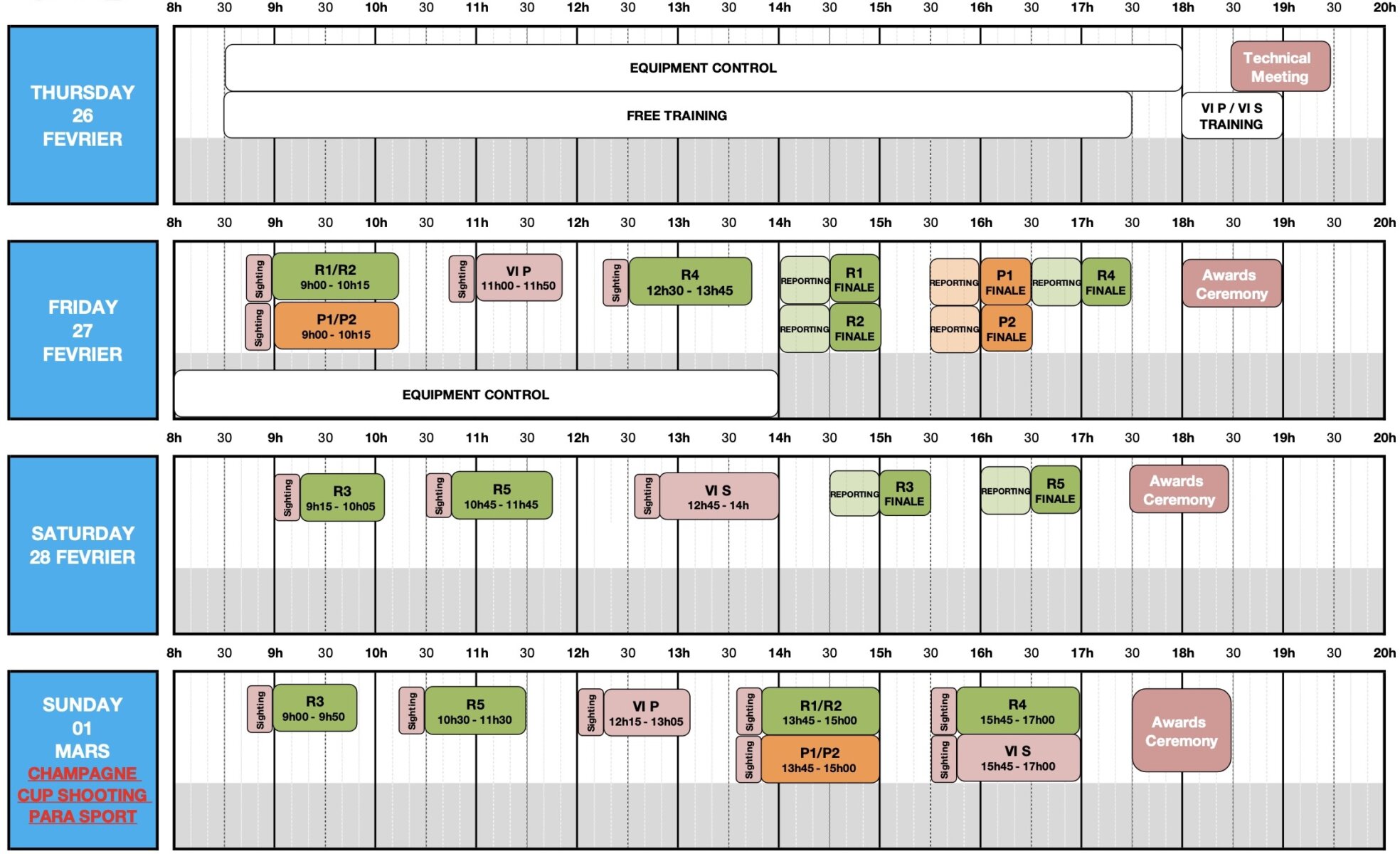 Cette année, le Grand Prix évolue et devient une compétition officielle internationale WSPS. La Ligue complète le Grand Prix en proposant un match supplémentaire pour chaque catégorie le dimanche 1ᵉʳ mars intitulé « Champagne Cup Shooting Parasport ».