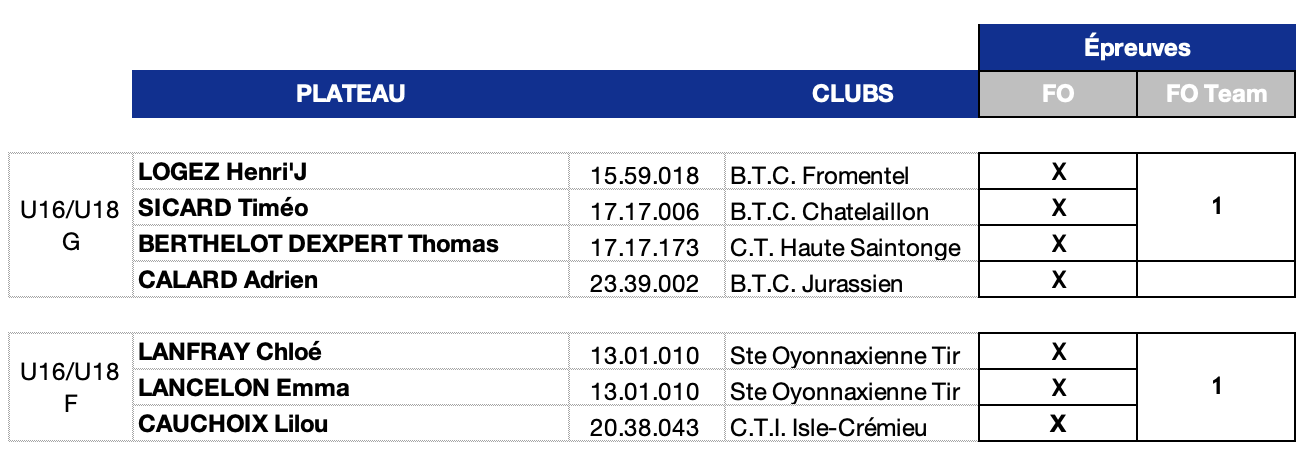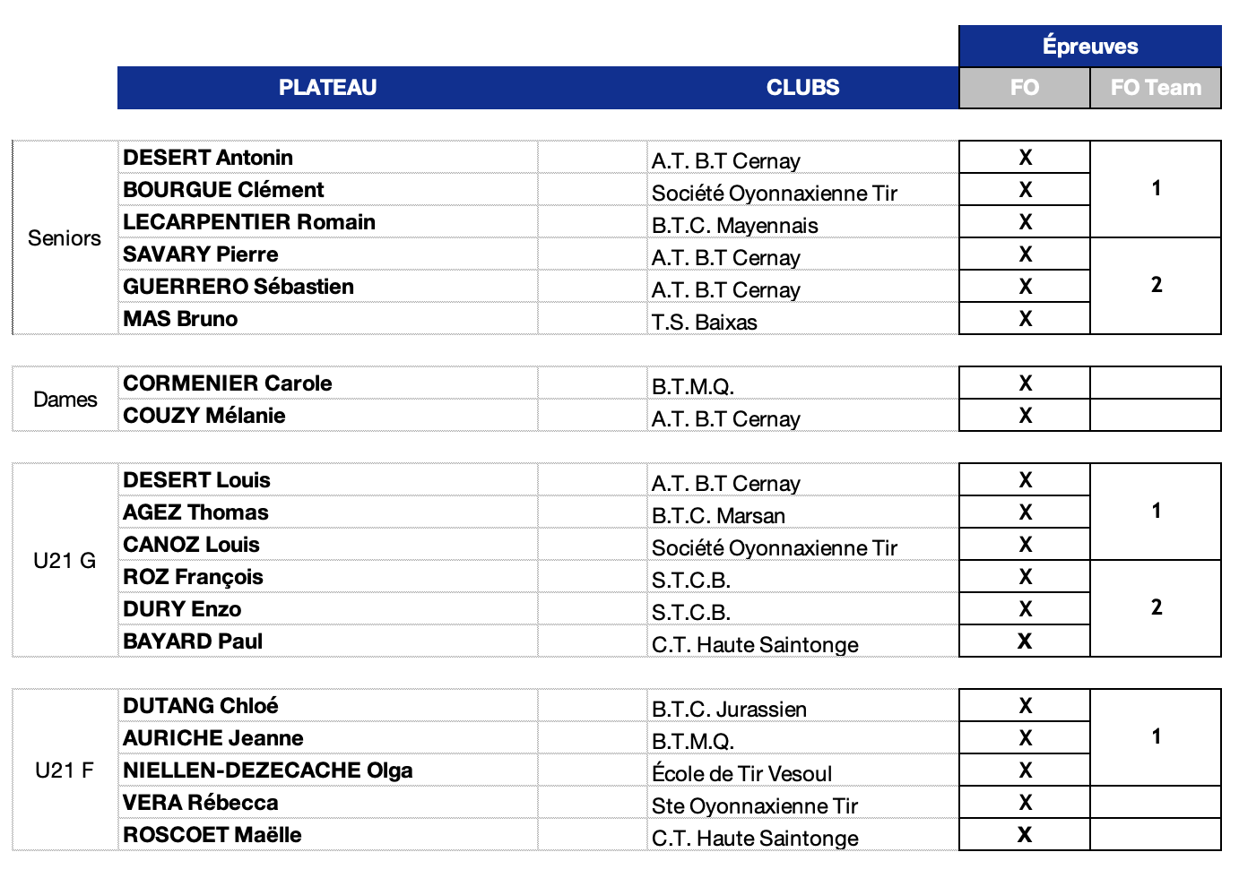 Fosse olympique Seniors / Dames / U21