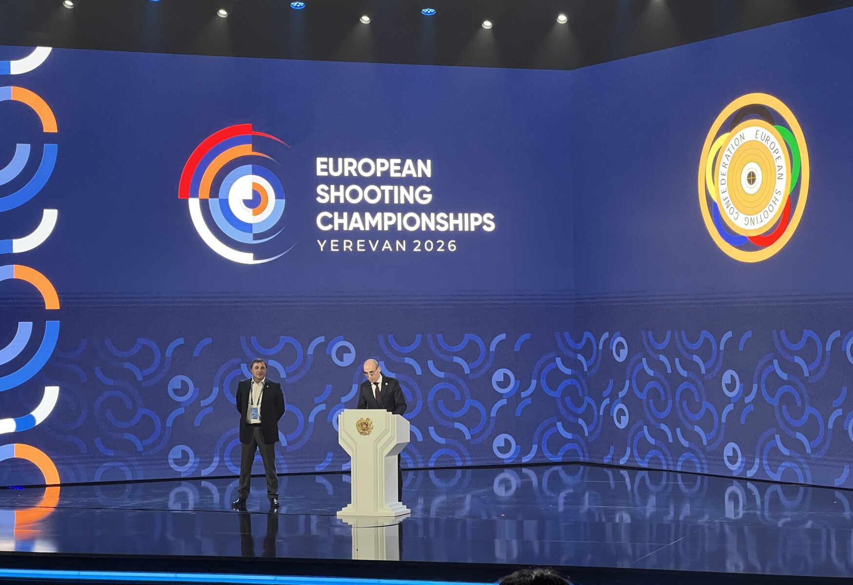 Cette journée a été marquée par la cérémonie d’ouverture du championnat qui s’est tenue à 19h dans le Sport and Concert Complex Karen Demirtchian, lieu même où va se dérouler la compétition. Une cérémonie entre tradition et modernité en présence du président de l’ESC, M. Alexander RATNER, du président de la Fédération Arménienne de Tir, M. Artur HOVHANNISYAN, de la ministre de l’Éducation, des Sciences, de la Culture et des Sports de la République d’Arménie, Mme Zhanna ANDREASYAN et enfin du premier ministre de la République d’Arménie, M. Nikol PASHINYAN.