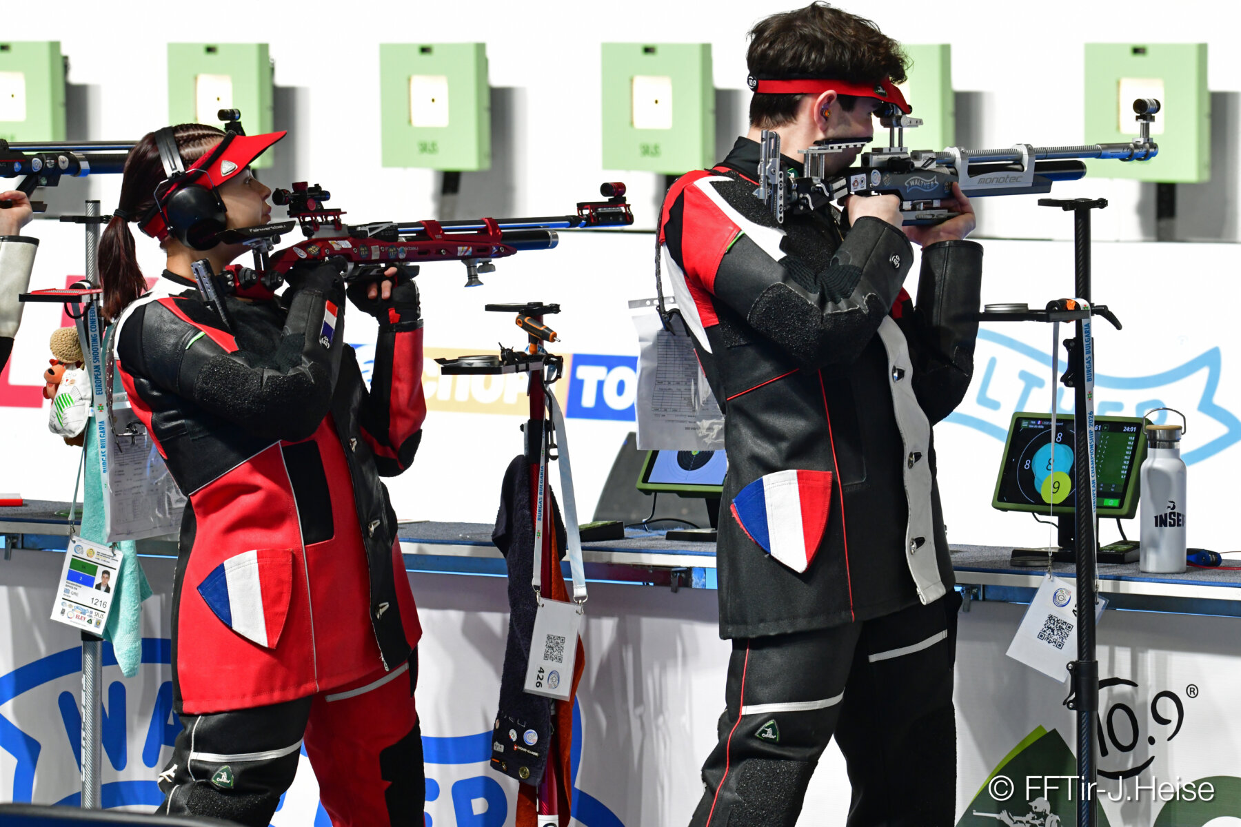 Tout comme hier, c’est à 9 heures 15 que les premiers tirs de Carabine à 10 mètres résonnent dans l’Arena de Burgas. Le premier relais concerne une française, Manon HERBULOT et nos deux Juniors Garçons.