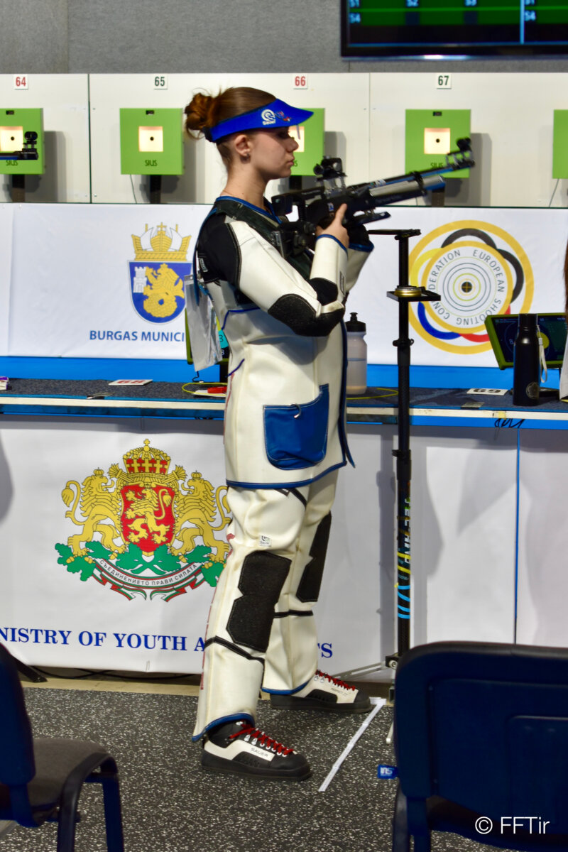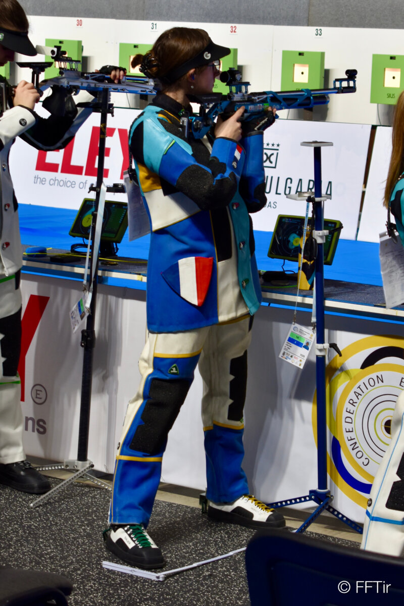 Nous n’avons pas engagé de garçons en U18, aussi le dernier match du jour sera l’épreuve U18 féminine qui commence à 18 heures. À l’issue de ses 40 tirs, Chloé PALLARO, du CREPS Bordeaux-Aquitaine, obtient 365 et 4x (93 ; 87 ; 91 et 94) et doit se contenter de la trentième place. Mathilde MILLET fait légèrement mieux avec 368 points et 5x (91 ; 91 ; 91 et 95). Elle est vingt-cinquième tandis que, sous bannière neutre, Viktoriia KOLODNAIA devient championne d’Europe 2026 avec le beau score de 384.