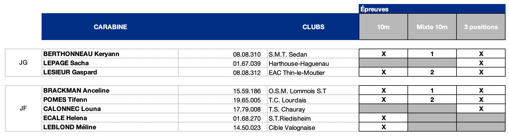 - LEYON Pascale – Entraîneure Skeet Olympique juniors