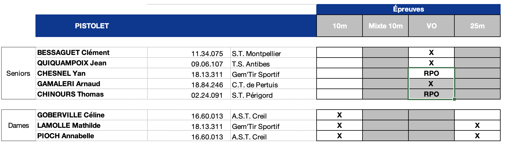 - BADIOU Franck – Accompagnateur Pistolet