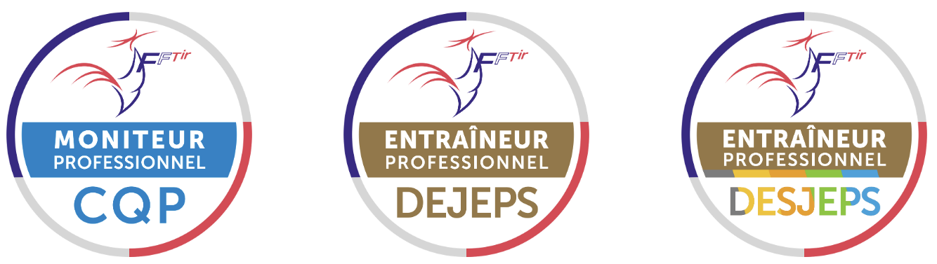 Ex. de compétences : « Transmettre l’éthique et les valeurs de la pratique du Tir sportif pour s’assurer une bonne utilisation de l’arme (cf. Site Fédéral), valider la progression du pratiquant en s’appuyant sur les outils d’évaluation du dispositifs Cibles Couleurs, construire des séances d’apprentissage cohérentes en les inscrivant dans un cycle de séances de tir sportif en portant une attention particulière pour les publics en situation de handicap. »